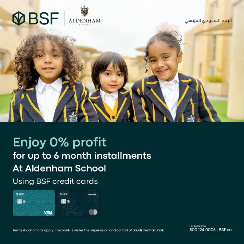 After careful structuring and close collaboration with BSF (Banque Saudi Fransi), we are pleased to make this possible for Aldenham families: tuition can now be paid in up to six monthly instalments with no profit rate when using BSF Credit Cards . This means families can now proceed with tuition even when full funds are not immediately available , ensuring their children's education continues without interruption.